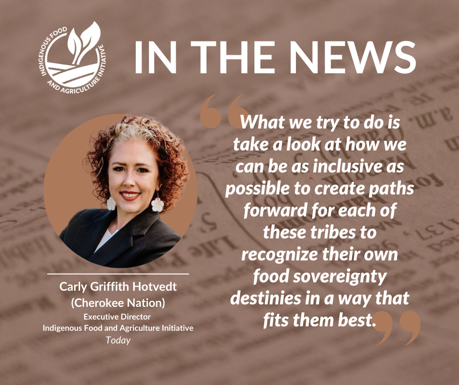 “The work that we do is for all 574 federally-recognized tribes in the United States, and we really respect all of those tribes’ food sovereignty desires,” Hotvedt says. “What we try to do is take a look at how we can be as inclusive as possible to create paths forward for each of these tribes to recognize their own food sovereignty destinies in a way that fits them best.”